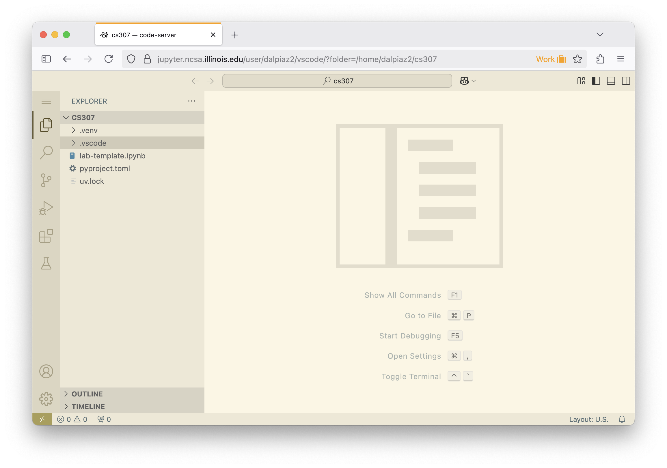 Once the environment has launched, you will see a mostly familiar VSCode interface, similar to Figure 2.